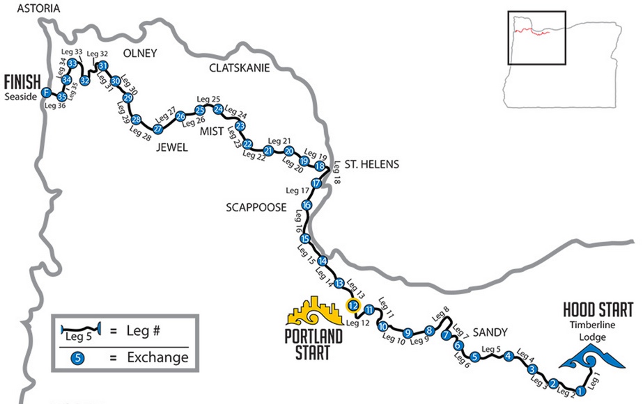 There's only a couple of more days until the Mother of all Relay Races begins and if you live in Government Camp, Rhododendron, Brightwood and Welches you know our local area will be inundated with massive numbers of vans, crazily dressed runners, clogged highways, and general chaos starting early Friday morning August 22nd! As far as numbers go, we are talking 12,600 runners and 3,600 volunteers this year! Numbers seem to peak in our area around afternoon and early evening. Yes, I'm talking about Hood to Coast the largest relay race in the entire world with runners coming from places far and near.