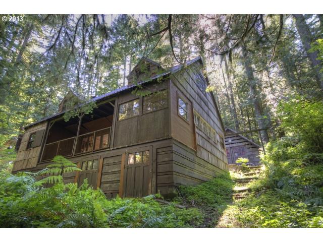 Still Creek cabin in spectacular setting above the creek. Big and roomy with original paned windows, huge living room with updated flooring and knotty pine. Spacious main level bathroom and a big upstairs sleeping loft. Rustic kitchen, eating bar, covered creekside deck. Bonus room off deck. Huge outbuilding. Seller will credit buyer $15,000 at closing for new septic installation. Located only one hour from Portland. Leased land.