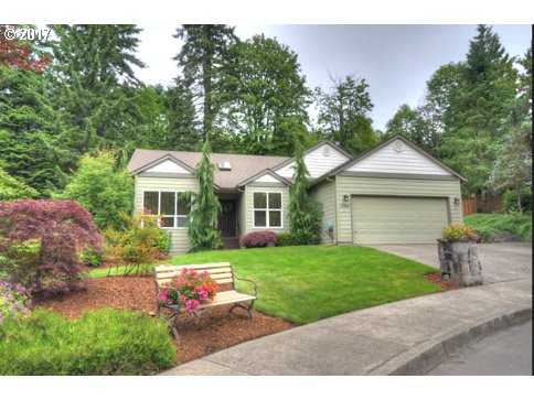Enjoy this picture perfect location on cul-de-sac close to Tickle Creek Trail with well maintained one level home sitting on .39 acre lot completely landscaped! Great for kids, pets, and garden. Fenced! Three bedrooms, two baths with updates. Stainless steel appliances and granite countertops. Gas fireplace, updated flooring, covered patio area. Huge backyard with paths, yard, garden area, fire pit, and chicken coop! Great location!