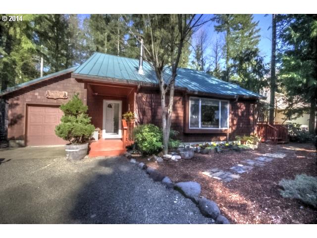 Comfortable custom home with tons of natural light. Enjoy this three bedroom, two bath home right across from the Sandy River in Timberline Rim. Beautiful laminate floors, tons of windows, cozy wood stove and Dave Enna tile accents throughout the home. There's also decks along the side and back of the home for lots of outdoor living. Bonus outbuilding and woodshed too. No yard work here!
