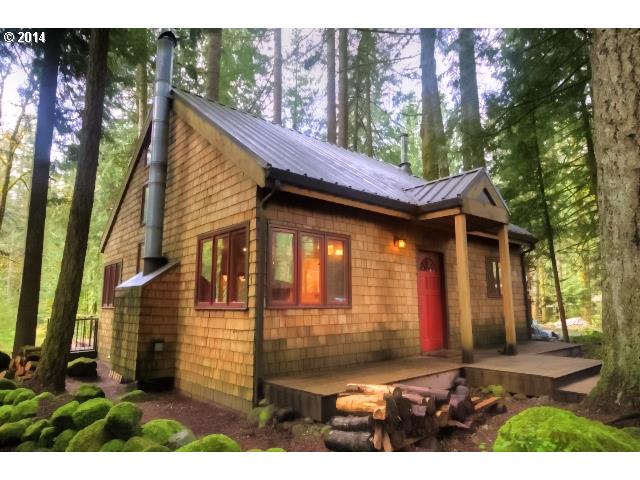 Handcrafted creek side Mt. Hood cabin in the foothills of the Cascades close to the Mt. Hood National Forest and skiing. This is the perfect ski cabin or big city getaway for some serious relaxation. All the hard work has been done on this gem. High vaulted ceilings with lots of natural light, wood walls, ceilings and hardwood floors bring warmth and relaxation. Warm your toes in front of the fireplace after a day on the slopes. The open floor plan is just what you want to share stories of your days adventures on Mt. Hood. Living room, kitchen and eating area are open and a door out the back takes you to a huge deck with a covered and uncovered sitting area. You can listen to No Name Creek or enjoy the territorial views of surrounding hills. You'll have everything you need here including a utility room with washer and dryer to get ready for skiing or hikes on the weekends. If Fido comes along, part of the back yard is fenced too. One hour from Portland!